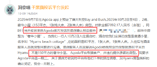 关键词:Agoda订酒店150平米房型缩水变80平米